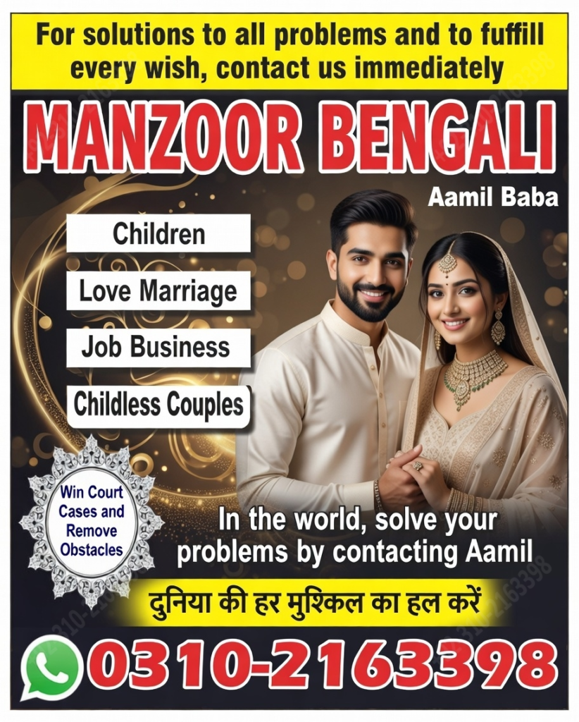 Famous Amil Baba Manzoor Bangali, Amil Baba in Rawalpindi, 03102163398, Amil Baba Contact Number 🔮 Black Magic Removal Specialist | Amil BabaAre you suffering from black magic, evil eye, love blockage, or spiritual attacks?Don’t worry! Amil Baba is a trusted spiritual healer and black magic removal specialist providing powerful Quranic and spiritual solutions.✅ Services Offered:Black Magic RemovalBandish (Blockage) RemovalLove Marriage ProblemsHusband & Wife DisputesBusiness & Job BlockagesEvil Eye & Negative Energy RemovalJinn & Spiritual Issues Treatment🌍 Services available in Pakistan and worldwide (online consultation available).📍 Available in: Lahore, Karachi, Islamabad, Rawalpindi, Faisalabad, Multan, Hyderabad, Peshawar, Sialkot and all major cities.Contact Amil Baba today for fast and effective spiritual solutions.🔥 Strong SEO Keywords:Black Magic Removal Specialist, Amil Baba Pakistan, Rohani Ilaj Expert, Bandish Removal, Love Problem Solution, Evil Eye Treatment, Spiritual Healer Pakistan, Online Istikhara Expert📌 Hashtags:#BlackMagicRemoval #AmilBaba #SpiritualHealer #BandishRemoval #LoveProblemSolution #EvilEyeRemoval #RohaniIlaj #PakistanSpiritualist #OnlineIstikhara